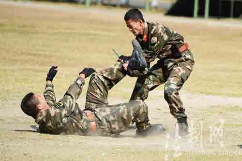 ????“科學(xué)的說(shuō)法就是運(yùn)用杠桿原理、打擊要害部位,通俗說(shuō)法就是四兩撥千斤!”身高不過(guò)168cm、體重不足60公斤的第四年兵左俊笑起來(lái)還是張娃娃臉,但已經(jīng)歷了20多次緝毒、緝私實(shí)戰(zhàn)考驗(yàn),特別是在2015年的一次破門(mén)緝毒行動(dòng)中,他徒手抓捕了一名身高185cm以上、從某國(guó)特種部隊(duì)退伍的毒販。他介紹,當(dāng)時(shí)使用的正是這套特種格斗技能。(廖鍵)
