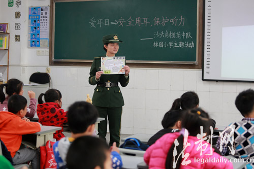????在第18個全國“愛耳日”即將來臨之際,3月1日,廣東公安邊防總隊六支隊“沙頭角模范中隊”與深圳市鹽田區(qū)林園小學(xué)共同開展“安全用耳 保護(hù)聽力”主題活動。