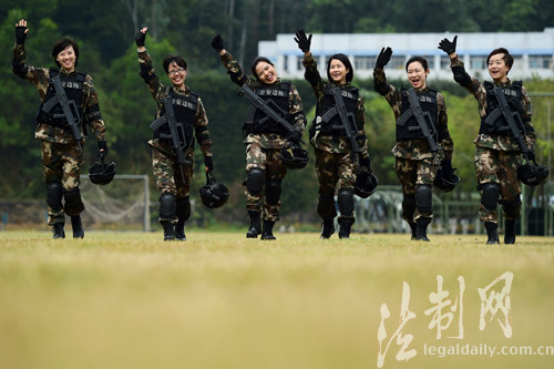 ????“干媽,我太想你了!”“隊長,我要給你個擁抱!”“我也要來個熊抱!”在深圳銀湖山下的邊防警營,記者現(xiàn)場看到,陳偉紅所到之處皆有掌聲,戰(zhàn)士們熱情的上前打招呼、話家常、送祝福。特別是在訓練場,一支六人組成的“霸王花”小分隊格外搶眼,手握九五式鋼槍,腳穿新式防爆靴,個個全副武裝、英姿颯爽,走起路來虎虎生風;細一掂量,僅身上的防彈背心、頭盔、鋼槍就有三十多斤重,均為目前的先進裝備??吹疥愱犻L到來,霸王花們又變成了小姑娘,紛紛涌向老大姐,拉家常、話思念?!拔覀兌际谴蠼愕耐降埽 迸形拘⒄f。作戰(zhàn)訓練科賴紹坤科長介紹,該支隊作為全國公安邊防部隊的機動力量,常年擔負多項緝私、緝毒、救援、處突任務;而該支隊平日里,這些女干部主要分布在各機關業(yè)務科室,但是只要任務需要,她們都將奔赴第一現(xiàn)場;所以平時的訓練同樣嚴格;“女干部和男干部一樣,無論在哪個崗位,每個季度都會組織進行體能、技能考核!”(廖鍵)