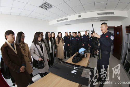 ????上午9時(shí),一輛掛著“相約藍(lán)盔、愛(ài)在警營(yíng)”紅色橫幅的大巴車(chē)緩緩駛?cè)刖?duì)營(yíng)區(qū)。一下車(chē),姑娘們饒有興致地參觀了警隊(duì)內(nèi)務(wù)設(shè)置和裝備展示,現(xiàn)場(chǎng)觀看了藍(lán)盔方陣扣人心弦的戰(zhàn)術(shù)表演,隊(duì)員們氣吞萬(wàn)里的練兵激情、敢打必勝的過(guò)硬素質(zhì),一下子吸引了大家的眼光。在此之前,她們只是在心中默默仰慕那頂“藍(lán)色貝雷帽”,從電視上看到過(guò)威武帥氣的維和隊(duì)員。第一次如此近距離接觸,讓不少姑娘的心中蕩起層層漣漪。