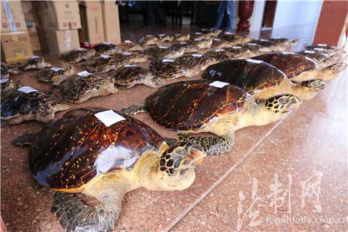 廣西防城港邊防查獲38只國家二級保護動物玳瑁標本