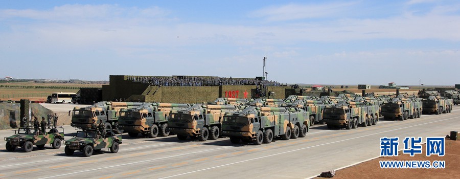 7月30日,慶祝中國人民解放軍建軍90周年閱兵在位于內(nèi)蒙古的朱日和訓(xùn)練基地舉行。中共中央總書記、國家主席、中央軍委主席習(xí)近平檢閱部隊(duì)并發(fā)表重要講話。這是常規(guī)導(dǎo)彈第1方隊(duì)。新華社記者 查春明 攝