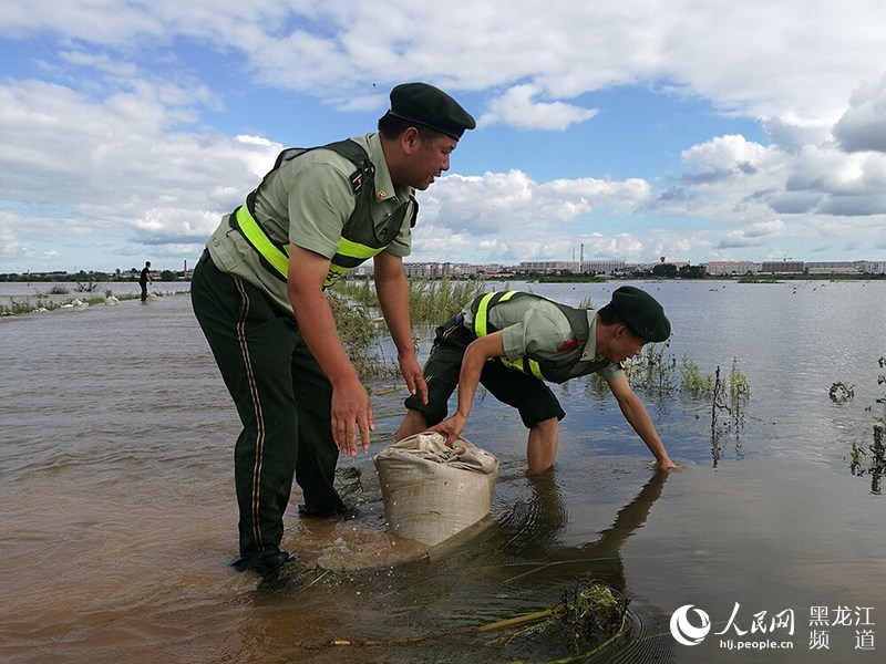 黑龍江撫遠:河水暴漲淹沒公路 邊防官兵緊急救援