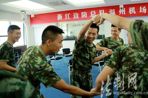 ????“快樂其實很簡單,用你的左手傳遞你的快樂,用你的右手接納別人的快樂……”浙江公安邊防總隊溫州機(jī)場邊檢站官兵正在心理教官的引導(dǎo)下開展心理減壓輔導(dǎo)活動。