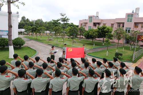 ????8月28日上午,廣西邊防總隊北海邊防支隊機動大隊42名臨退老兵面對黨旗再一次重溫入伍誓詞,感悟軍人的忠誠與責(zé)任、邊防戰(zhàn)士的自豪與驕傲。