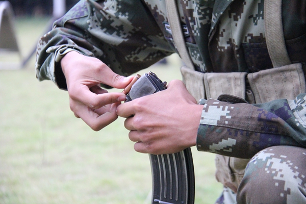 ????射擊場(chǎng)上,隨著指揮員一聲令下,新兵分批次領(lǐng)取實(shí)彈奔向射擊地線(xiàn)、臥姿裝彈、據(jù)槍瞄準(zhǔn),動(dòng)作干脆利落。 “一號(hào)靶42環(huán),二號(hào)靶48環(huán)、三號(hào)靶……”報(bào)靶員通過(guò)對(duì)講機(jī)向記錄員如實(shí)報(bào)告。經(jīng)最后成績(jī)統(tǒng)計(jì),這個(gè)新訓(xùn)團(tuán)廣西籍新兵唐美飛在考核中取得了步槍精度射擊5發(fā)子彈49環(huán)的最好成績(jī),他興奮說(shuō)道:“我打了49環(huán),主要是我們班長(zhǎng)教的好,我會(huì)加倍努力,不辜負(fù)班長(zhǎng)對(duì)我們的嚴(yán)格要求?!保惥待垼?/p>