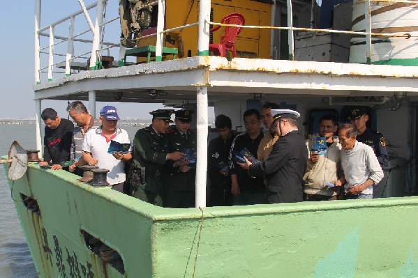 ????這個(gè)所通過(guò)現(xiàn)場(chǎng)授課、交流問答等方式向船東船長(zhǎng)講解了海上漁業(yè)安全生產(chǎn)知識(shí)和《沿海船舶邊防治安管理規(guī)定》,深入淺出地向漁船民講解走私犯罪的嚴(yán)重危害,引導(dǎo)漁船民牢固樹立反走私意識(shí),積極營(yíng)造全民參與反走私工作的社會(huì)氛圍,取得良好宣傳成效。