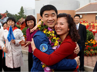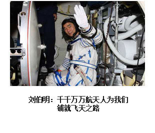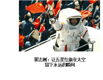 ??? 漫步太空、紅旗永駐。2008年9月27日16時(shí)43分,浩渺太空,敞懷相迎,我在戰(zhàn)友伯明、海鵬的協(xié)助和支持下,打開(kāi)軌道艙艙門(mén),邁出了中國(guó)人在茫茫太空中的第一步。在19分35秒的艙外活動(dòng)中,我隨飛船一起飛過(guò)了9165公里,成為中國(guó)“飛得最高、走得最快”的人。然而,成功并不代表成熟,一切仍要從零開(kāi)始。后續(xù)的空間站任務(wù)、登陸月球……路還很長(zhǎng),挑戰(zhàn)還很多,需要付出和努力的也還很多。對(duì)于我來(lái)說(shuō),沒(méi)有停歇的腳步,只有奮進(jìn)的號(hào)角。