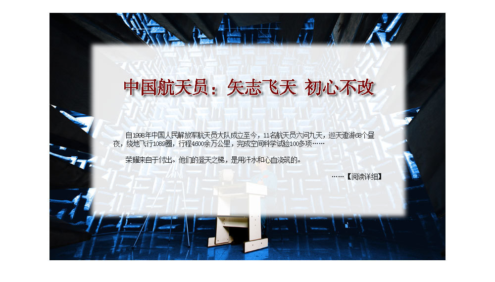 ??? 時(shí)刻準(zhǔn)備著,將祖國(guó)的榮耀一次次寫(xiě)滿(mǎn)太空。在我加入航天員大隊(duì)后,有2件事深深地烙在我的腦海中。一是,一位老華僑在神舟五號(hào)任務(wù)成功后,含淚而說(shuō)的“你們航天員飛得有多高,我們海外游子的頭就能昂多高”。二是,我們面對(duì)國(guó)旗許下的誓言,“為祖國(guó)的載人航天事業(yè)奮斗終身”。我始終以嚴(yán)慎細(xì)實(shí)的精神,以時(shí)不我待的狀態(tài),腳踏實(shí)地、努力學(xué)習(xí)、刻苦訓(xùn)練,以實(shí)際行動(dòng)踐行諾言,用一生的執(zhí)著與追求,時(shí)刻準(zhǔn)備著,將祖國(guó)的榮耀一次次寫(xiě)滿(mǎn)太空!?