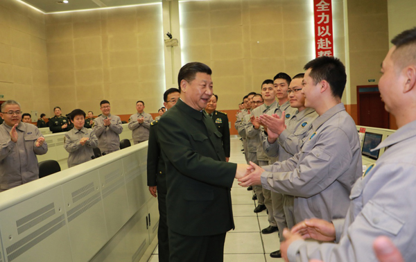 新華社成都2月12日電(記者李宣良、李國利)中華民族傳統(tǒng)節(jié)日——春節(jié)來臨之際,中共中央總書記、國家主席、中央軍委主席習(xí)近平10日來到駐四川部隊某基地,深入發(fā)射工位和技術(shù)廠房,看望慰問部隊官兵,代表黨中央和中央軍委,向全體解放軍指戰(zhàn)員、武警部隊官兵、民兵預(yù)備役人員致以誠摯問候和新春祝福。他強調(diào),要認(rèn)真貫徹黨的十九大精神,深入貫徹新時代黨的強軍思想,堅持政治建軍、改革強軍、科技興軍、依法治軍,聚焦備戰(zhàn)打仗,加快創(chuàng)新發(fā)展,全面提高履行使命任務(wù)能力,為實現(xiàn)黨在新時代的強軍目標(biāo)作出新的更大貢獻。