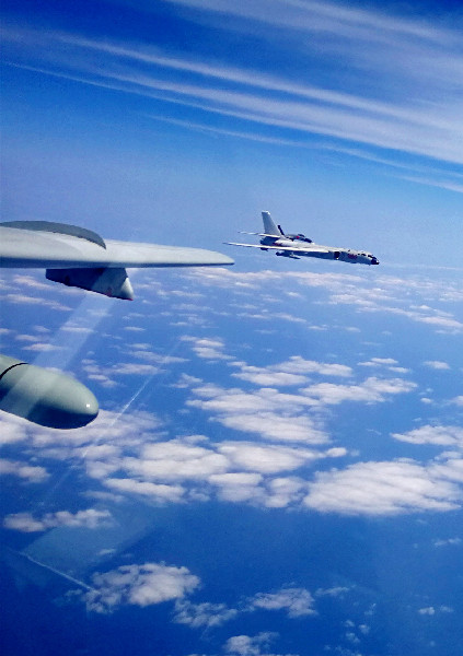 ??? 4月19日,中國空軍轟-6K等多型戰(zhàn)機執(zhí)行“繞島巡航”任務。中國空軍4月21日向海內外發(fā)布多語種宣傳片《戰(zhàn)神繞島新航跡》??哲姂?zhàn)神轟-6K等戰(zhàn)機近日連續(xù)3天“繞島巡航”的震撼畫面,在宣傳片中集中展現(xiàn),彰顯了空軍飛行員維護國家主權和領土完整的意志能力。新華社發(fā)(秦軍 攝)