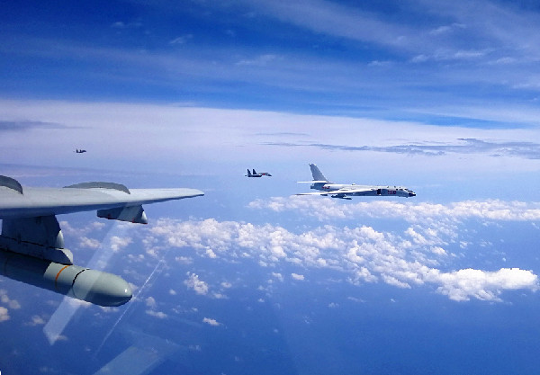 ?。丛拢保溉找詠?,空軍出動轟-6K、蘇-30、殲-11和偵察機、預警機等多型多架戰(zhàn)機,開展了海上方向實戰(zhàn)化軍事訓練。轟-6K等戰(zhàn)機實施了“繞島巡航”訓練課題,提升了機動能力,檢驗了實戰(zhàn)能力。