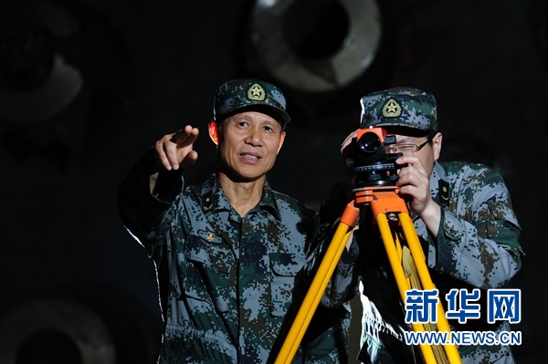 中國工程院院士、軍事科學院國防工程研究院研究員任輝啟(左)開展量測工作(資料照片)。新華社發(fā)(侯藝兵 攝)