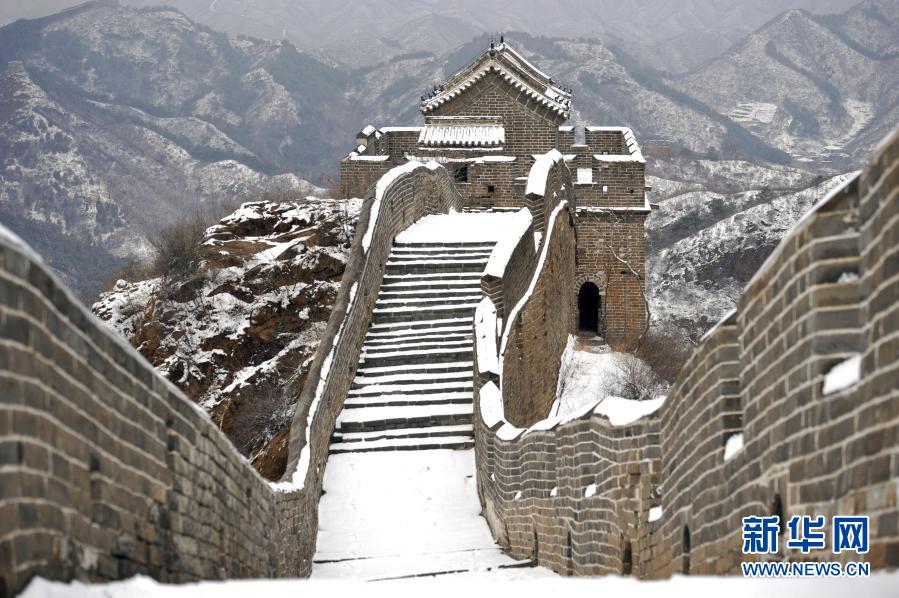 這是2月23日拍攝的金山嶺長城雪景。受冷空氣影響,河北省承德市灤平縣當日出現(xiàn)降雪天氣。雪后的金山嶺長城銀裝素裹,美如畫卷。新華社發(fā)(王立群 攝)