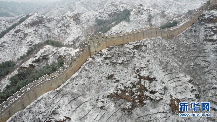 這是2月23日拍攝的金山嶺長城雪景(無人機照片)。受冷空氣影響,河北省承德市灤平縣當日出現降雪天氣。雪后的金山嶺長城銀裝素裹,美如畫卷。新華社發(fā)(王立群 攝)