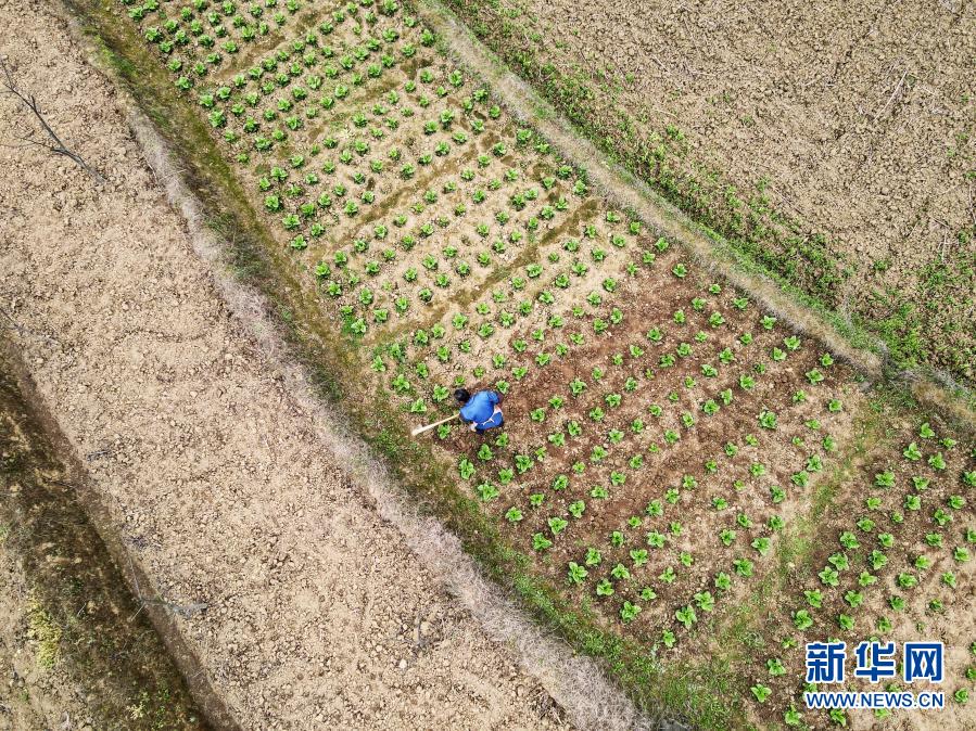 3月13日,遵義市匯川區(qū)團(tuán)澤鎮(zhèn)農(nóng)民在田間勞作(無人機(jī)照片)。新華社發(fā)(羅星漢 攝)