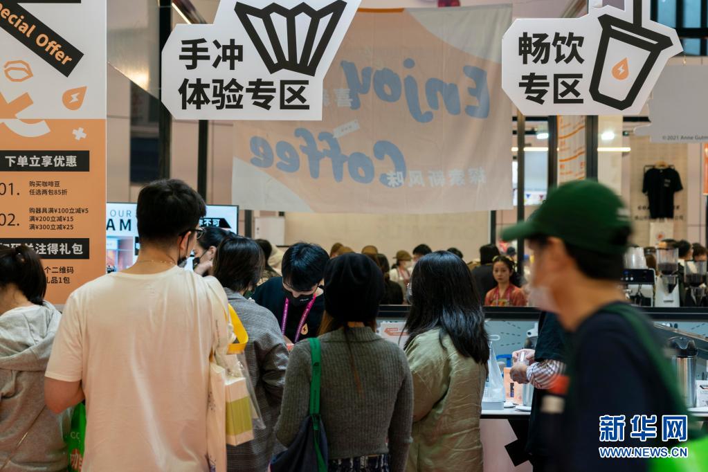 3月29日,人們?cè)跁?huì)場(chǎng)內(nèi)等待品嘗咖啡。