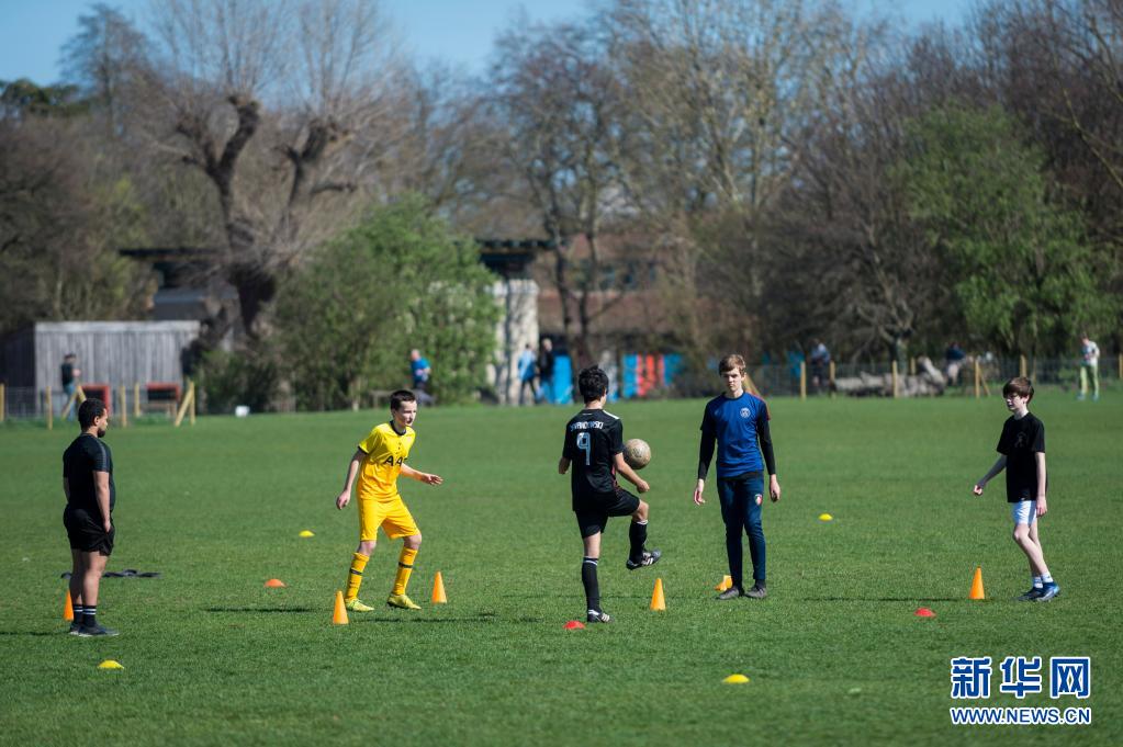 3月29日,人們在英國倫敦攝政公園踢足球。
