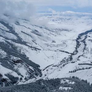 當日,一場春雪過后,新疆沙灣市南部的天山山脈一片銀裝素裹。蒼山覆雪、云霧繚繞,如同一幅幅水墨畫般動人。