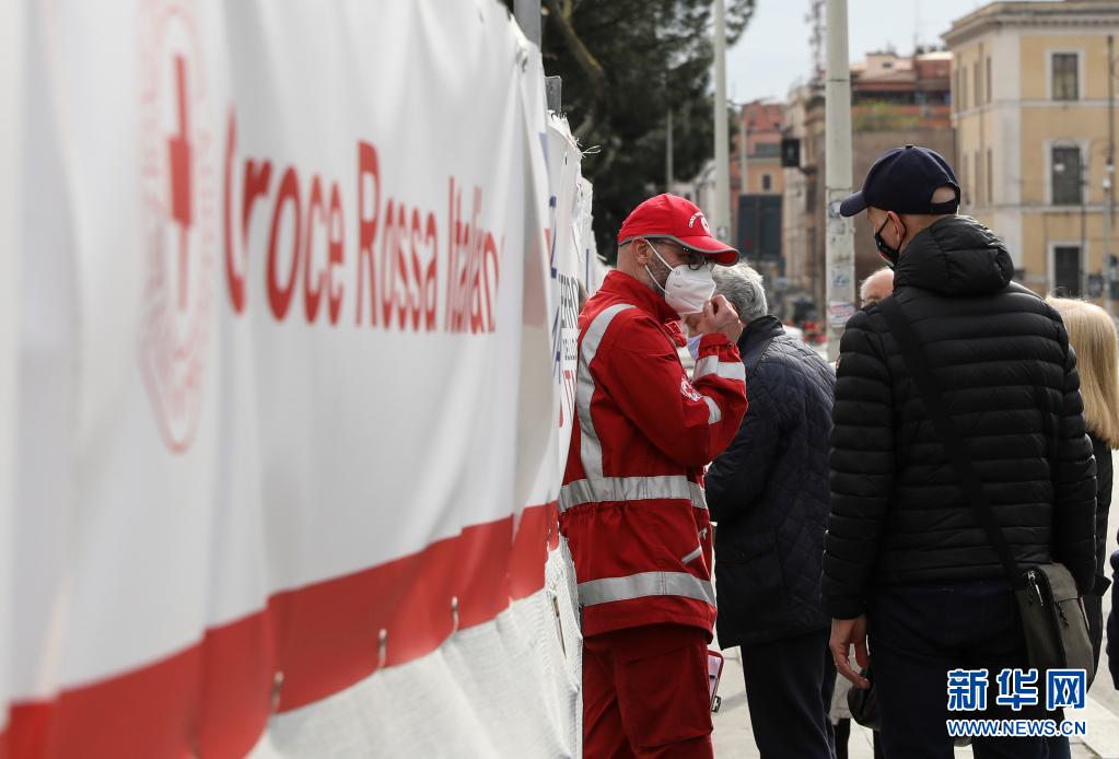 4月3日,人們在意大利羅馬一處新冠疫苗接種點門口登記準(zhǔn)備進(jìn)入。