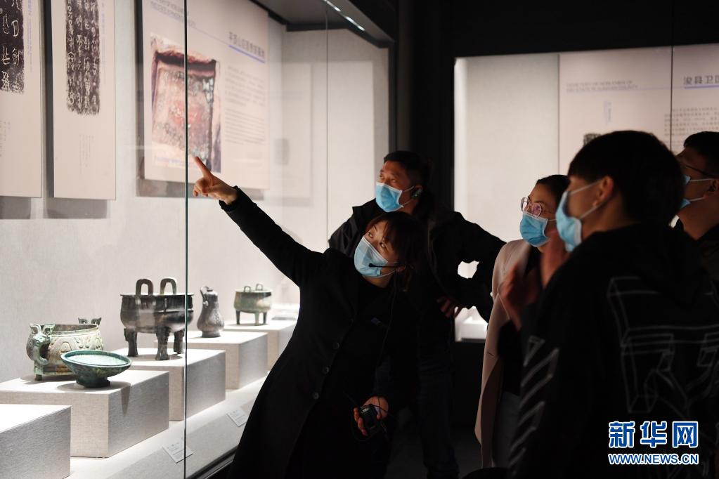4月5日,河南博物院講解員為參觀者講解。