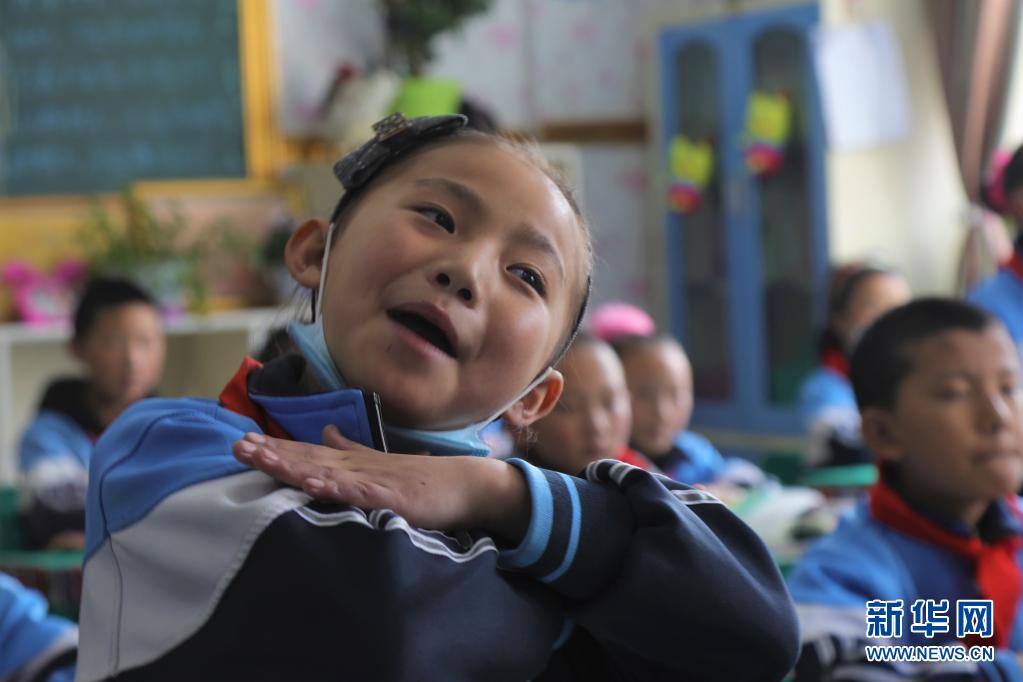 青海省玉樹藏族自治州玉樹市第三完全小學(xué)的學(xué)生才卓瑪在課堂上(4月12日攝)。
