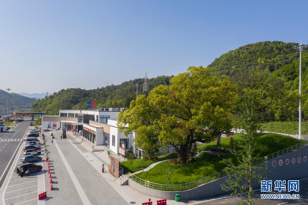 杭州第二繞城高速西復線次塢服務區(qū)有3棵樹齡在100年以上的古樹。服務區(qū)在建設過程中,將古樹保護起來,現(xiàn)已成為一道特色景觀。新華社發(fā)(郭斌 攝)