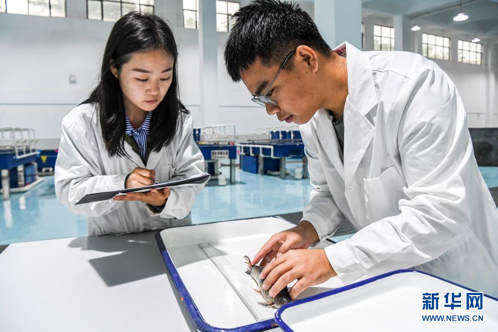 4月20日,大藤峽魚類增殖放流站的袁婷博士(左)與同事一起收集野生魚的生物數(shù)據(jù)。