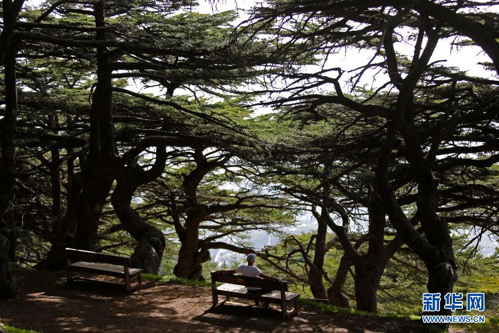 4月18日,一名男子坐在黎巴嫩舒夫保護(hù)區(qū)雪松樹下休息。