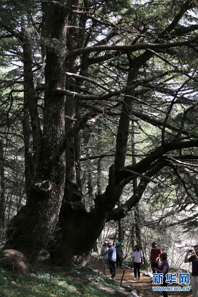 4月18日,游人在黎巴嫩巴魯克雪松保護(hù)區(qū)內(nèi)游覽。