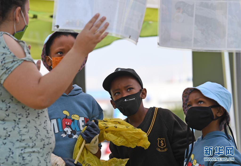 4月22日,南非比勒陀利亞的志愿者向小朋友們介紹環(huán)保知識(shí)。