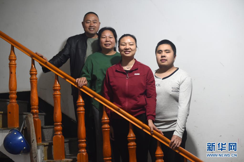 葉景芬和父母、弟弟在家中合影(4月28日攝)。她的弟弟也是一位盲人。新華社記者 韓傳號 攝