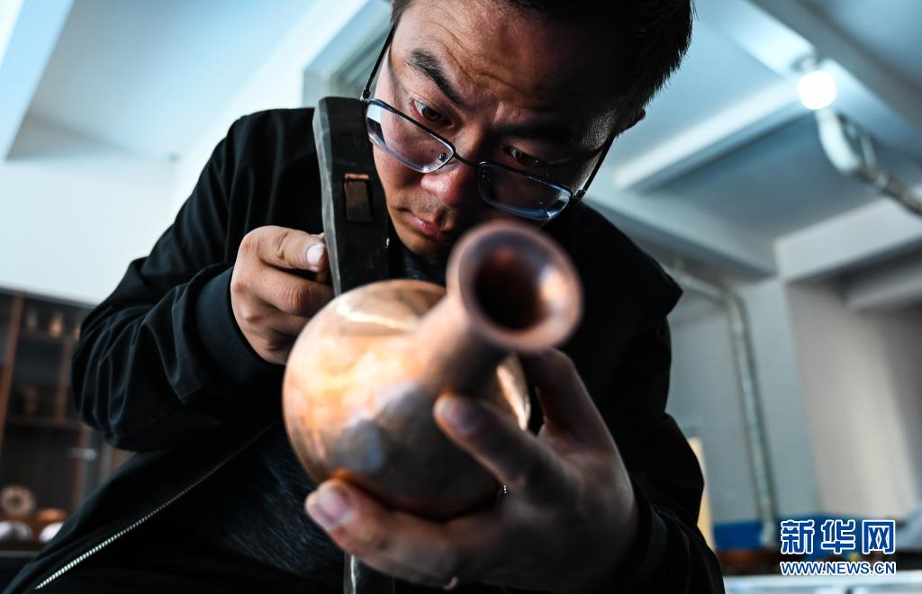 地處滇東北、烏蒙山腹地的云南會(huì)澤縣流傳著具有300多年歷史的斑銅制作工藝。斑銅工藝復(fù)雜,要采用高品位的銅為原料,經(jīng)過20余道工序制作而成。產(chǎn)品“妙在有斑,貴在渾厚”,風(fēng)格獨(dú)樹一幟。33歲的張偉是會(huì)澤“張氏斑銅”的第十三代傳人。自幼深受地域文化和家庭熏陶的他,大學(xué)畢業(yè)后,返鄉(xiāng)從事斑銅制作工作。在會(huì)澤古城的“銅匠街”,張偉創(chuàng)辦了斑銅傳習(xí)館,不斷研發(fā)斑銅新產(chǎn)品、傳承著這項(xiàng)非遺技藝?!鞍咩~是一種情感、一種文化,希望在我們這代人的努力下能夠更好地將它傳承下去,讓更多人了解斑銅的獨(dú)特魅力?!睆垈フf。