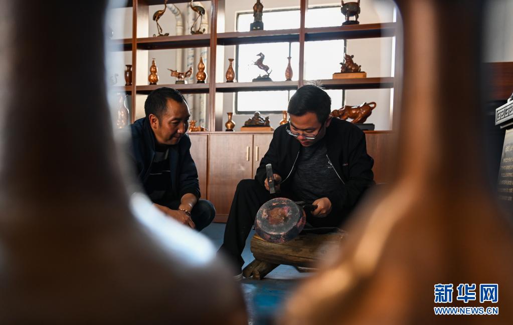 地處滇東北、烏蒙山腹地的云南會(huì)澤縣流傳著具有300多年歷史的斑銅制作工藝。斑銅工藝復(fù)雜,要采用高品位的銅為原料,經(jīng)過(guò)20余道工序制作而成。產(chǎn)品“妙在有斑,貴在渾厚”,風(fēng)格獨(dú)樹(shù)一幟。33歲的張偉是會(huì)澤“張氏斑銅”的第十三代傳人。自幼深受地域文化和家庭熏陶的他,大學(xué)畢業(yè)后,返鄉(xiāng)從事斑銅制作工作。在會(huì)澤古城的“銅匠街”,張偉創(chuàng)辦了斑銅傳習(xí)館,不斷研發(fā)斑銅新產(chǎn)品、傳承著這項(xiàng)非遺技藝?!鞍咩~是一種情感、一種文化,希望在我們這代人的努力下能夠更好地將它傳承下去,讓更多人了解斑銅的獨(dú)特魅力?!睆垈フf(shuō)。