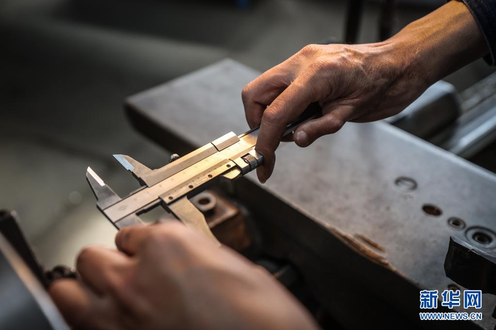 4月30日,王尚典使用卡尺測(cè)量零件數(shù)據(jù)。