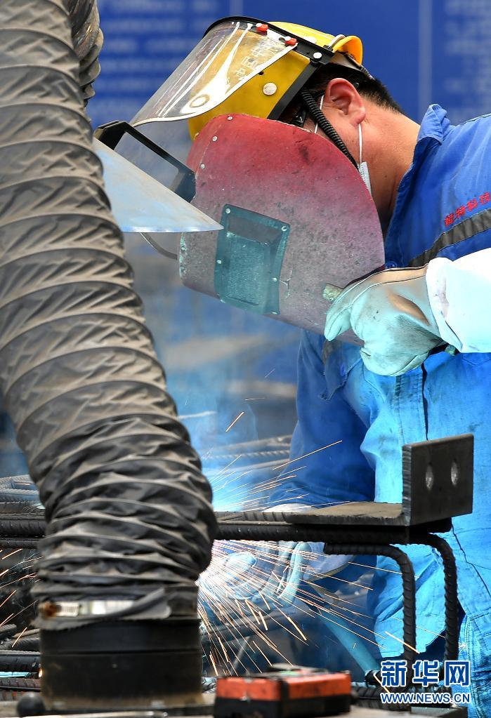 5月1日,在陜西西安地鐵八號線豐禾路站1號豎井施工現(xiàn)場,中鐵七局的工作人員在作業(yè)。