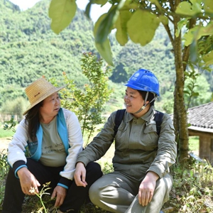 4月30日,在恩施咸豐縣清坪鎮(zhèn)馬家坪村,林麗(右)和村民在路邊拉家常。