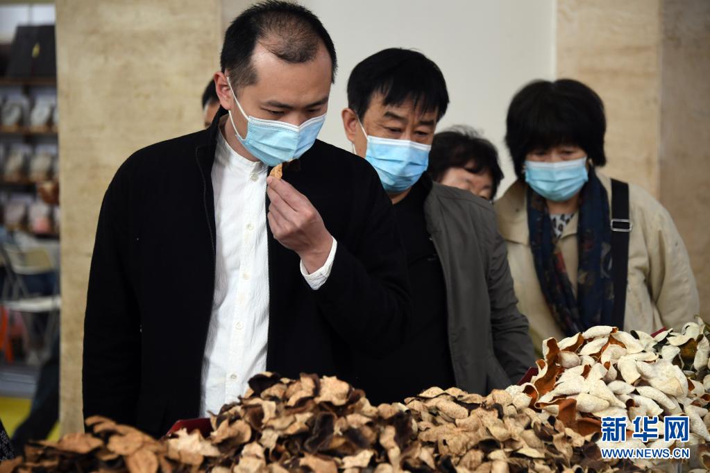 李卓澄在第十三屆中國(北京)國際茶業(yè)及茶藝博覽會中了解展出的陳皮(4月23日攝)。新華社記者 任超 攝