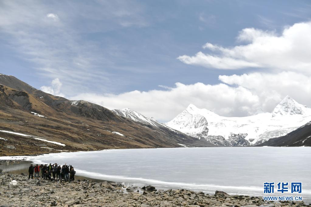 5月4日,游客在那曲市比如縣境內(nèi)的薩普雪山附近拍照。