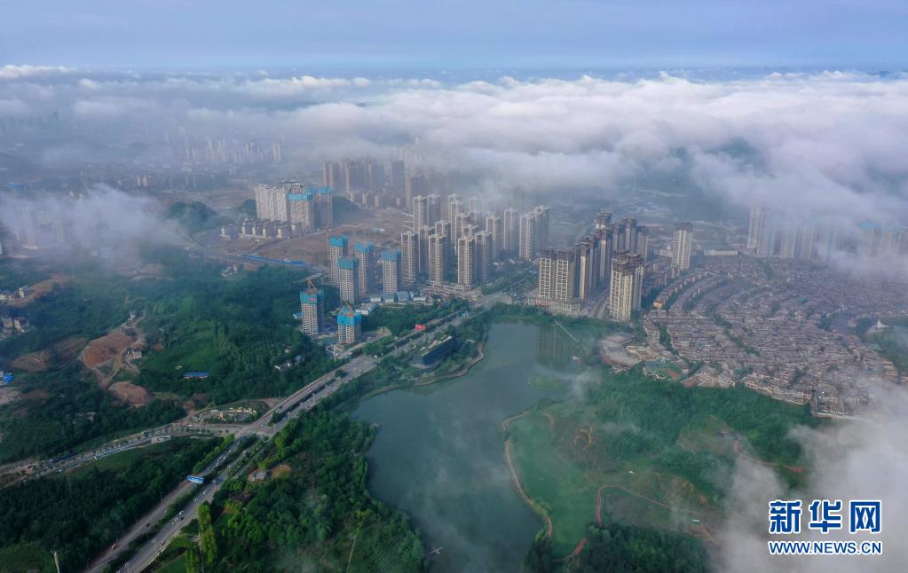 5月8日,貴陽(yáng)市觀山湖區(qū)的高樓被霧氣籠罩(無人機(jī)照片)。