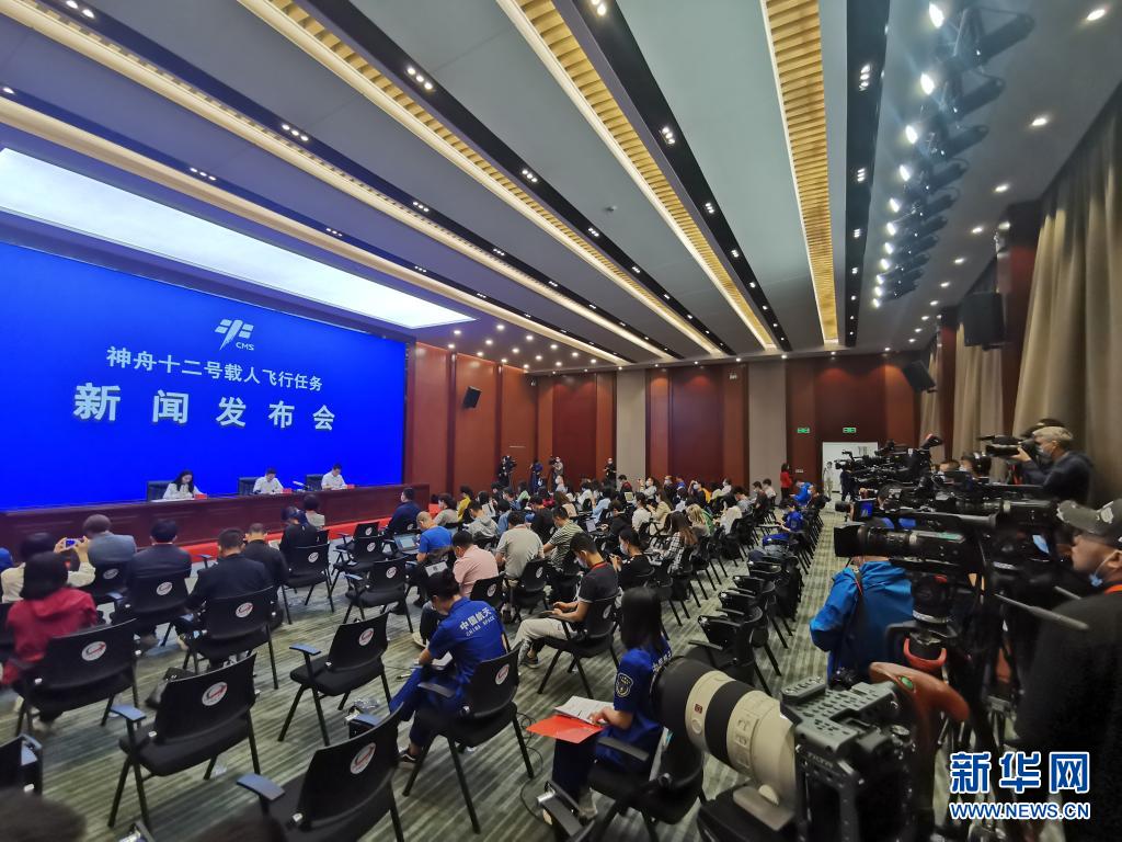 6月16日,神舟十二號載人飛行任務(wù)新聞發(fā)布會(huì)在酒泉衛(wèi)星發(fā)射中心召開(手機(jī)拍攝)。