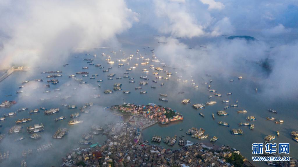 8月1日,在浙江溫嶺箬山漁港,漁船準備出海作業(yè)(無人機照片)。