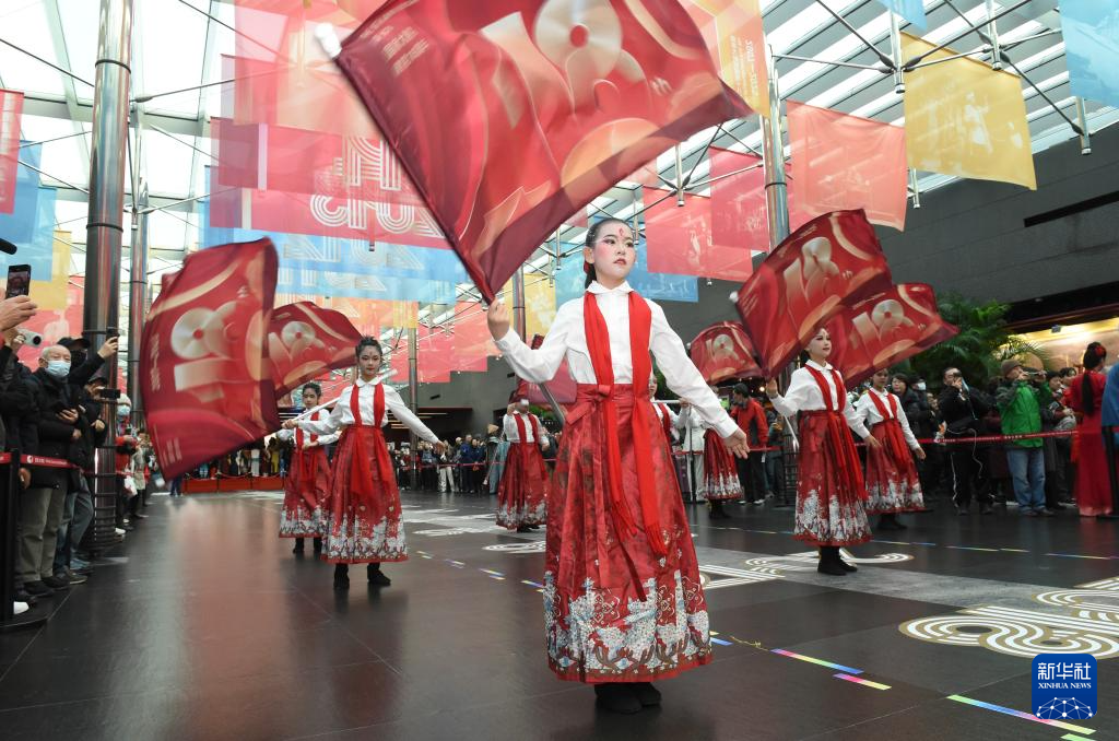 12月22日,演员在国家大剧院北门入口处敲响迎宾鼓,拉开活动序幕。