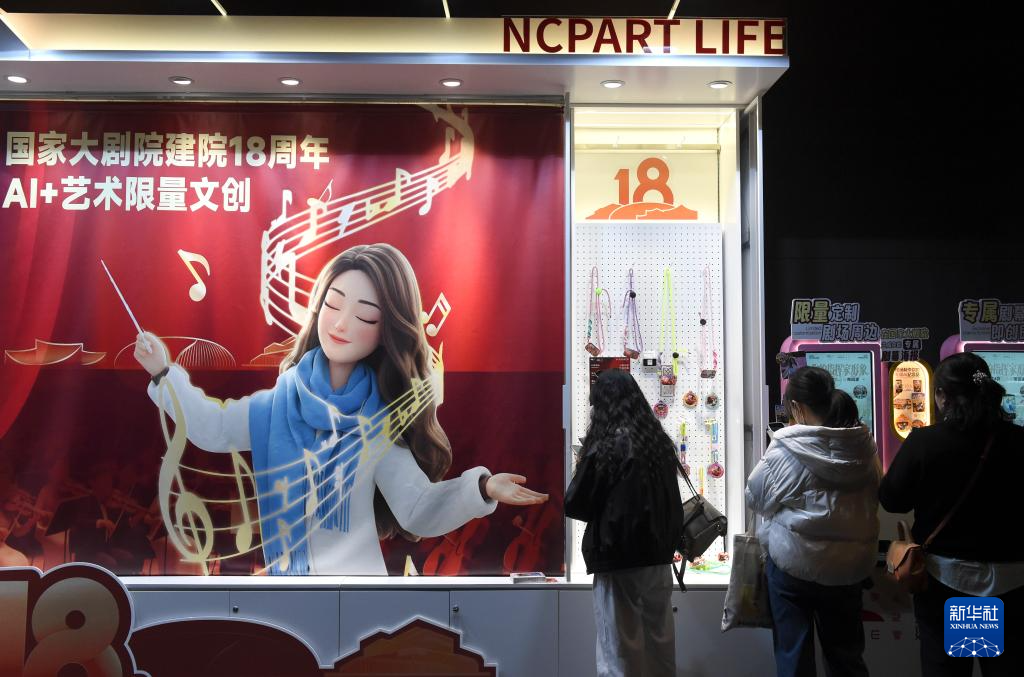 12月22日,观众在国家大剧院选购文创产品。