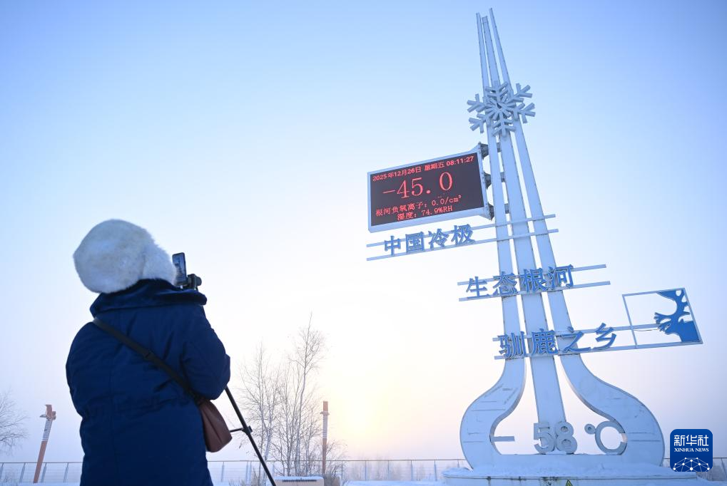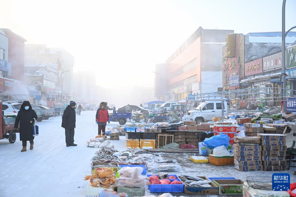 12月26日清晨,“中国冷极”内蒙古呼伦贝尔市根河市气温低至零下45摄氏度。然而,极寒未能阻挡生活的脚步:露天早市准时开张,市民们照常出行采购,来自各地的游客与直播者则用镜头记录着这片冰天雪地。
