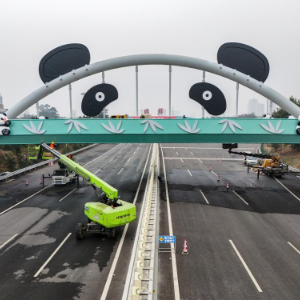 12月30日在成南高速扩容工程成都收费站前拍摄的主题装置(无人机照片)。