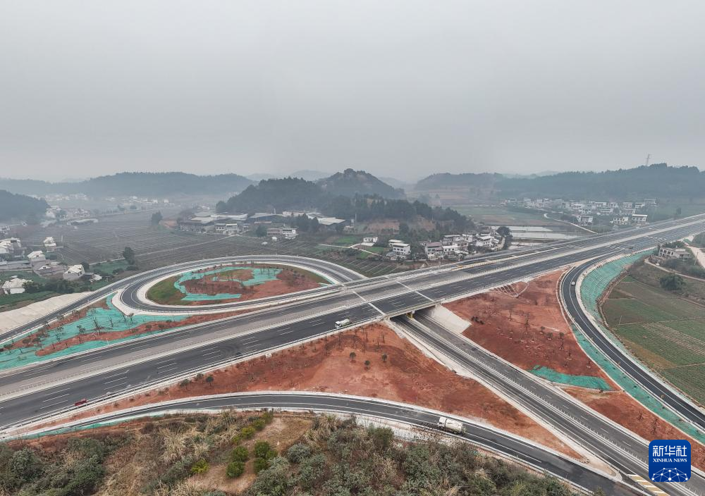 12月30日拍摄的成南高速扩容工程黄桷垭互通(无人机照片)。