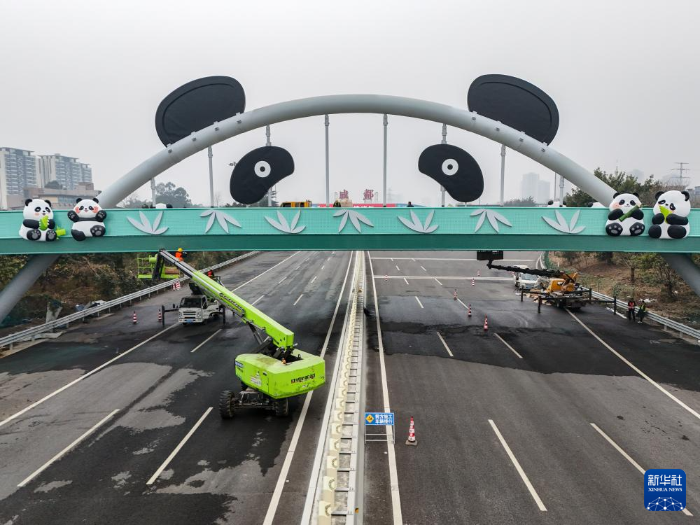 12月30日在成南高速扩容工程成都青白江段拍摄的主题装置(无人机照片)。