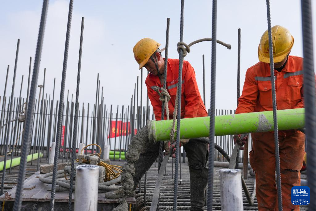 12月30日,建设者在甬舟铁路西堠门公铁两用大桥5号主塔封顶现场作业。