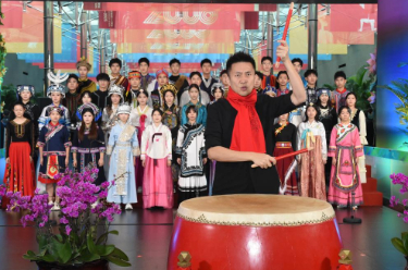 12月22日,演员在国家大剧院北门入口处敲响迎宾鼓,拉开活动序幕。